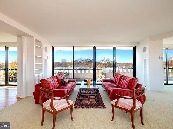 Significant price adjustment on this glorious, glamorous and grand corner apartment! This rarely available, dramatic floorplan on the point of Watergate West offers panoramic river and city views, large wraparound balconies, and a perfectly located large, unique eat-in kitchen with wall of windows overlooking the Potomac River. The unit's 2330 interior square feet comprise a large entrance hall with coat closets and powder room, a stunning rotunda foyer leading to the fabulous living room/great room with multiple seating areas. There is a separate large formal dining room and two large bedrooms, each with an en suite bathroom (presently the bedrooms open to one another by way of pocket doors). There is a large storage room included. SEE FLOOR PLAN UNDER DOCUMENT TAB. This wonderful apartment is offered in strictly AS IS condition by the owner's estate . There is an under lying mortgage on this unit of $78,666. This amount will be assumed by the buyer and deducted from the Sales Price at settlement. The monthly mortgage payment is $533. The monthly coop fee of $3106 includes property taxes, utilities, maintenance of HVAC and basic cable. Watergate West amenities include 24-hour front desk & doorman service, heated outdoor pool, roof terrace with spectacular river views, fitness center, beautifully landscaped gardens, plus on-site shops & restaurants. Walking distance to the Kennedy Center, Georgetown Waterfront, Foggy Bottom Metro, Watergate Hotel and restaurants.
