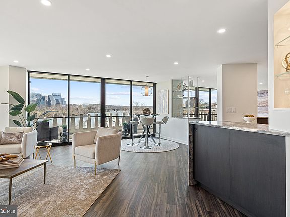 Breathtaking River View, Superb Renovation. 2,740 square foot interior, exquisitely renovated by BOWA Design/Build. Three bedrooms converted to 2 bedrooms and den, 3.5 baths. Over 90-ft full balcony and floor-to-ceiling windows turn the corner and follow the river, across the entire sunny southwest facing interior. Balcony access from every room. A panorama of Potomac River, Key Bridge, Kennedy Center, Roosevelt Island, and sunset views is matched by the sensational one-of-a-kind interior. The living and entertaining spaces include 4 seating areas. The unforgettable dining space has a woodworking masterpiece crafted ceiling and accent wall in walnut with hidden lighting strips and an Italian glass chandelier. Abundant art space and recessed dimmable and adjustable lighting throughout. Trucor Black Hills Oak flooring throughout. Sophisticated office/den/theater room with pocket privacy doors, Cygnus quartz wall-to-wall bench. Office features a wrap-around desktop in Zeus White quartz, AV easily accessible in cabinets. Gourmet kitchen with quartzite counters - the beautiful Taj Mahal quartzite counters, sitting bar, and backsplash set the stage for the captivating Cobalt Blue quartzite peninsula countertop, waterfall and raised breakfast bar counter. Custom Brookhaven cabinetry and specialty pull-out cabinet with organizer. Appliances include Miele Mastercool II Smart refrigerator, Miele 30" gas range with convection, Miele steam oven with multi-steam technology, Miele dishwasher, Miele dual zone wine storage refrigerator, Zephyr Range Hood, Panasonic microwave Invertor Technology & Genius sensor. Pendant lighting. Pentair Everpure filtered water system. Well-lit pantry with movable shelving and rolling cart. Luxurious primary bedroom with custom draperies, sitting area, Contardi Lighting, wall sconces by King Roselli Architects. Tailored Living closet system. The primary bath features two thermostatic shower systems, Brizo Raincan showerhead and EuroSlide Bar handshower, heated floor and towel warmer, wood vanity, wood surround whirlpool tub with Bubble Massage and IPE wood decking - all will make you feel like you stepped into a spa. Toto commode. Emil Stonetalk Italian tile floors and surround. Accent wall, vanity counter, and designer floating stone shower benches in Kalahari quartzite. The second bedroom features a Tailored Living murphy bed, and Exercise TRX XMount Anchor. Guest bathrooms with Emil Stonetalk Italian tile, Zanzibar Marble and Silver Brown Wave Travertine benches, Floating vanity counters in Zeus White quartz. The powder room has a floating vanity with Basalt stone sink base and pendant lights. Bosch washer/dryer and Zeus White Quartz counters. Double-pane windows have extra 3M Prestige film for art protection and comfort. State-of-the-art smart home features include rock-solid mesh WIFI, CAT6 cables, Samsung TVs with 4K Apple TV, Lutron motorized shades, Eufy doorbell, Netgear switches, and UPS protection. Lutron programmable motorized blinds are in the entertainment areas, custom black-out draperies in bedrooms. Extraordinary closet and storage space throughout, plus additional storage. Underground parking space can possibly hold two cars. $103,000 Building Mortgage is subtracted from the sale price at settlement.!!!Ask agent. Watergate West has undergone terrific and extensive renovations. All inclusive fee includes property taxes, utilities, maintenance of HVAC and basic cable. Watergate West amenities include 24-hour front desk & doorman service, heated outdoor pool, roof terrace, fitness center, beautifully landscaped gardens, plus on-site shops & restaurants. Walking distance to the Kennedy Center, Georgetown Waterfront, Foggy Bottom Metro, Watergate Hotel & Spa, and restaurants.