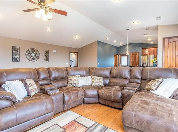 Gorgeous Custom-built Ranch on Fully Fenced-in & Gated 8.6 Acres w/Pole Barn, Extra Parking, & Covered Front PorchW.Stunning View!! With over 1,800 sq ft, this open floor plan boasts a Great Room w/bay window, Dining Area, Eat-in Kitchen, 3Bedrooms, 3 Full Baths, Tile & Engineered Hardwood Flooring throughout, Vaulted/Coffered Ceilings, & a 5x5 Vault Room that isinsulated w/steel vault door. The Kitchen has 42 Custom Cabinetry w/Crown Molding Complimenting Backsplash, GraniteCountertops, Breakfast Bar, Stainless Steel Appliances, and More! Master Suite has Spacious Walk-in Closet & Master Bathw/Double Sink, Separate Shower, & Jacuzzi Tub. Outdoor Wood Furnace heats Home, Garage, & Water Heater. 24x40 POLEBARN & 19x40 Lean-to w/4 doors on side has concrete floors, 220 electric, lighting, & storage! Yearly Real Estate Taxes only$1,493!
