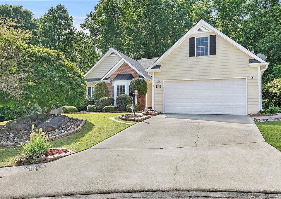 Charming Ranch home on Cul De Sac in Suwanee features mature landscaped yard. Private Back Yard with Two decks and Two Paved Patios. Steel / Canvas Patio Gazebo (9'H x 13'W X 10"D) with a 3 year warranty added in 2024. A 10 X 10 Metal Outbuilding added in 2018 and a Two Door Shed / Workshop with Power. Approximately 300 square foot sunroom. Garage door replaced in 2019. 80 Gallon Water Heater replaced in 2019. Great Room with Vaulted Ceiling opens to dining area and Kitchen. Kitchen features granite countertops, gas cooktop, soft close kitchen drawers and built in pantry organization system. Oversized primary bedroom with bathroom featuring a walk in tub and double vanity. There are 2 additional bedrooms and a full bath. Plenty of possibilities with unfinished area over the garage with stairs giving easy access to this promising space.
