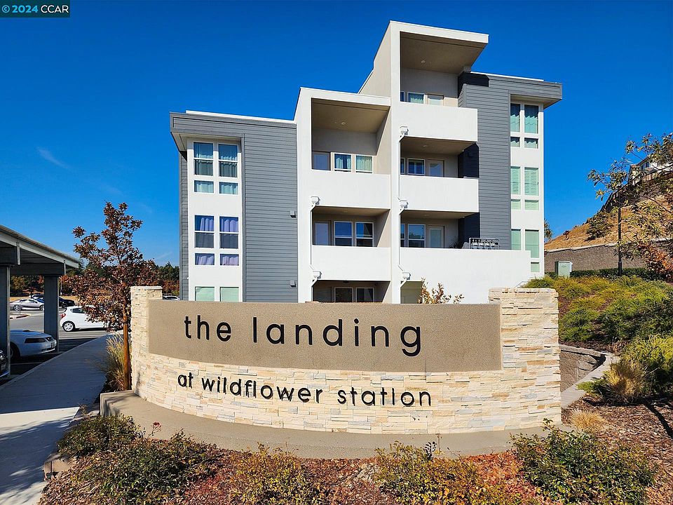 Open Sunday 12-3 pm - The Landing at Wildflower Station is a new condominium complex. Unit #90 in newest 2700 Building. This corner unit has 3 bedrooms, 2 full baths. The master/primary bedroom with carpets & views & a balcony, with a large master/primary bathroom with shower stall & double sinks, a guest bedroom with corner windows and views, and a full hall bathroom with tub/shower combo. Both bathrooms have tile floors. Inside laundry with full size stackable washer and dryer. The kitchen has stainless steel appliances & sink, granite counter with custom backsplash, white cabinets & recessed lighting. The living room open concept complete with luxury vinyl plank flooring and into the kitchen, access to the balcony and views of the hills. The balcony is perfect for the evening barbecues. This unit comes with 1 covered parking space #90 and plenty of open parking for guests or if you own 2 cars. The Community Center and Fitness Center will save time and money by using the fully equipped gym featuring treadmills, ellipticals, bikes, and various strength training machines. The builder is DeNova Homes. This is the perfect home for the first-time buyer or a commuter buyer since BART is 3 minutes away. Close to BART, shopping, restaurants, parks, walking trails & golf.