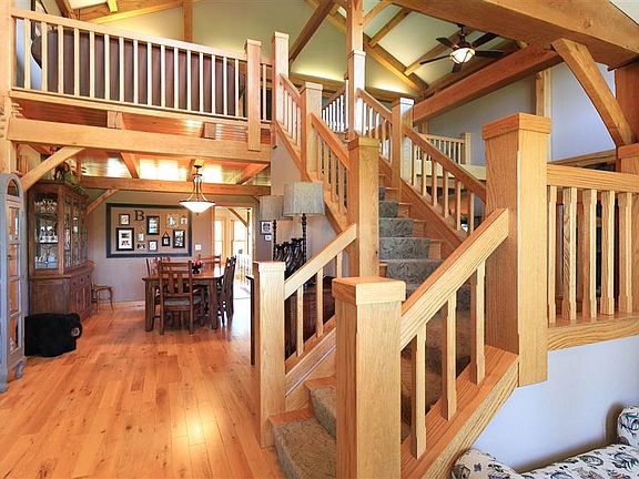 Country living at its finest. Dramatic 2 story 4 bedroom oak timber frame home on a 3.8 acre manicured grounds. Main level master bedroom suite, Open two story exposed oak beams, 6 car stalls, includes 30' x 40' pole barn, gas back up Generac generator with automatic transfer switch, Rinnai tankless water heater, and Healthy Climate Solutions Ventilation system.