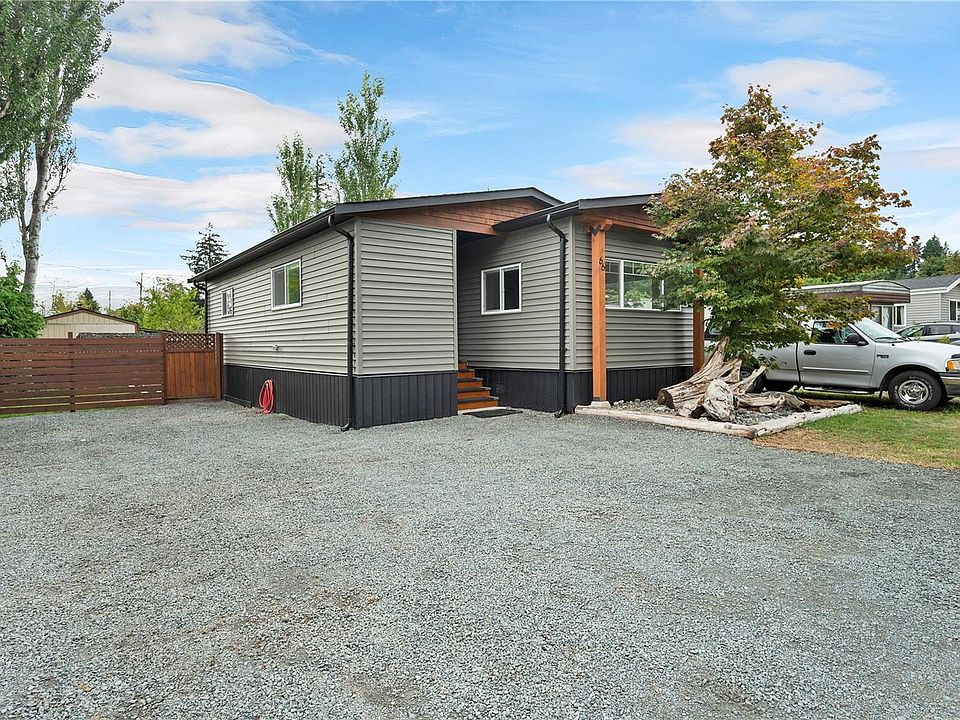 Welcome to this updated 3 bedroom 2 bathroom mobile home in a family-friendly park with lowest pad rent in Campbell River with the same amazing amenities! This home has seen extensive updates including a new roof, siding, plumbing and a fully renovated kitchen offering peace of mind for years to come. The floor plan features an open living and dining area, a bright kitchen with plenty of storage, and spacious bedrooms including a primary with ensuite. The fully fenced yard is ideal for children and gardening, and the large driveway provides parking for multiple vehicles. The park also offers a separate parking area for boats, RVs, and more. Tucked away at the end of a quiet no-through road, this community is just steps from hiking and biking trails and minutes from the beautiful Campbell River where you can enjoy riverside walks or world-class fishing. With all major upgrades complete, this move-in ready home combines comfort, affordability, and a fantastic location. Rentals allowed!