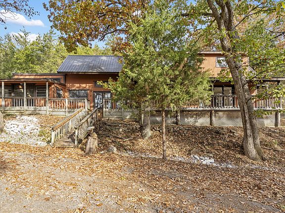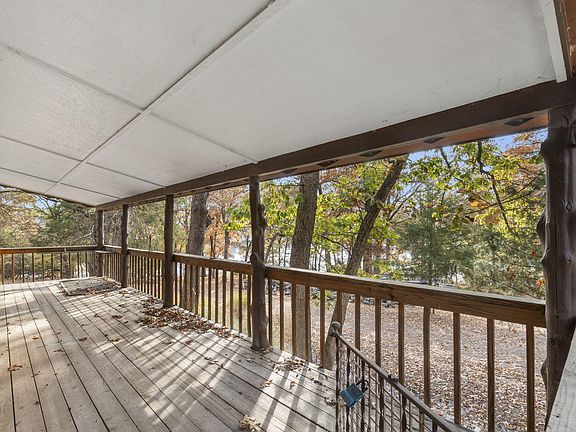 Incredible opportunity to own a Table Rock Lake Home with an easy walk to the beach! Sitting on over half an acre, this home features 3 beds, 2.5 baths and over 2000 SF! This home has the potential be a perfect get away or permanent residence. Featuring a NEW private well, multiple covered deck spaces, and a living room with vaulted ceilings and open balcony area above. Kitchen offers ample cabinet space, a center island, built-ins, and a nearby 2nd living area or dining area! Main floor primary bedroom with high beamed ceiling and bathroom. Upstairs, 2 more bedrooms. A full workshop outside next to the house. A large storage building (12x20) could be a wonderful guest house. Home sold in as-is condition.