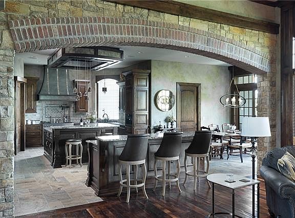 Retreat to your secluded, west Shawnee residence with the luxury of being close to all the modern conveniences. This truly custom, 1-1/2 reverse story home is nestled on the back half of the treed 7.3 +/- acres for privacy. Upon entering the property, you are greeted by an exquisitely designed, one-of-a-kind iron gate. You start your drive down a slightly winding, concrete driveway onto a hand-laid paver driveway. This fully custom-built home was meticulously crafted by B.L. Rieke Custom Homes with the finest materials and using some of the best artisans and craftsmen. Custom-made and designed features include the metal kitchen range hood, metal living room fireplace mantle and the metal countertop brackets. Beautiful, natural stone with brick features on the front elevation extending into the interior's 3 archways and 3 fireplaces. There are two separate offices for working at home; one is conveniently located off the kitchen. Full Wolf and Sub Zero appliances with additional Wolf steam oven and built-in coffee station. Reclaimed hardwood floors and reclaimed wood feature walls bring nature inside. 8' tall alder doors, fully crafted cabinetry, natural stone floors, walk-in pantry (with lots of storage space) and a spacious laundry room are some of the added features. Entertaining is a delight with the covered porch, 4 season room, lower-level bar, family room and wine room. Four spacious bedrooms and 6 (4 - Full; 2- half) bathrooms. Garage floors are suspended for added storage space and a safe room. This estate is also a car lover's dream! The main house garages will house 9 cars with tandem parking, with a bonus of 3 more garage spaces on the detached, architecturally matching, 3-car garage/outbuilding. This is a one-of-a-kind masterpiece.