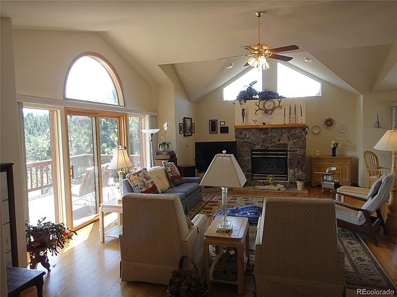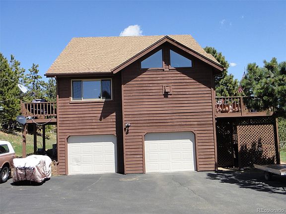 Located in the sweet spot of Aspen Park, close to schools, you'll find your new home. Situated on a hill with panoramic views of foothills, this raised ranch features lots of light, vaulted ceilings, interesting architectural highlights, several decks and 2 bedrooms plus the master suite on the same level. Master suite includes a private deck, plenty of room for furniture, walk-in closet, 5 piece bath with heated floor and deep soaking tub. The living room is welcoming with a wall of windows to see the views, sliding door to the deck and natural gas fireplace. This flows to the dining area that opens to the back deck that is plumbed for gas grill. Spacious kitchen features pull-out drawers with plenty of cabinets and countertops. Directly next to the kitchen is the laundry and pantry with plenty of storage. The lower level consists of a huge family room with a wet bar that could be a kitchenette, complete with a small fridge that is included. Sliding door to let in the light and a free-standing wood stove. Separate office/den/bonus room for your needs. New furnace installed last month. Great mudroom that leads to the oversized garage with workbench. Plenty of parking and turn-around space on the paved driveway. Seller is offering $2,600 with a full price offer for new carpet or flooring. This is one you'll want to see.