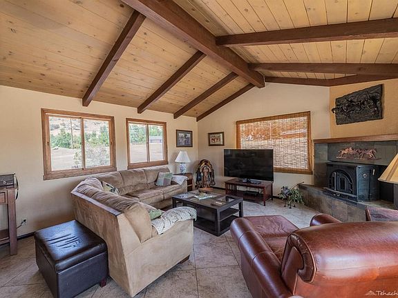 Country ranch home with a bright mid-century modern feel. 2.17 acres fully fenced and cross fenced featuring a 3 stall barn with spacious in-and-out corrals, large round pen, pasture, feed room, garage, and additional corrals. Prime location on the valley floor near gate, market, equestrian center, and gas station. Natural gas, fireplace, central heating, and air.