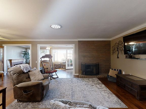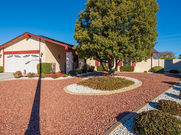 ENJOY 55+ LIVING! In this remodeled single story home on a 9,583 sqft large lot in the highly desirable Sun City Civic Assoc! This home features new crown molding and baseboard throughout! Hard to find 2 car garage with NEW epoxied concrete and many recent custom renovations to draw a more open floor plan! Custom renovations to all bathrooms, master bedroom, and stamped concrete wrapped around the entire home! NEW month old HVAC system, NEW front door and screen slider, Water Softener, and Solar Panels! Relax in your comfortably sized family room with 2 fireplaces, formal dining area with modern lighting, and a gourmet kitchen built for function and flexibility, beautifully appointed with upgraded countertops, There are 2 bedrooms with that cozy feel, an additional 3rd room is perfect as another bedroom/den. Sellers added natural sunlight into spacious Lanai Addition! Master bedroom features en suite bath remodeled with new cabinets, counters, and custom tile shower. Secondary bathroom is also remodeled with custom tile , new vanity, lighting and countertops. Complete drip system landscaping in the backyard with many mature fruit trees, Top Quality shed on new foundation concrete slab out back! Details are too many to mention! Low TAXES and $382 annual HOA dues! Residents enjoy wonderful amenities including HOA activities, a gym, spa, two heated pools, and classes for woodworking, ceramics, and more. Close to shopping and entertainment.