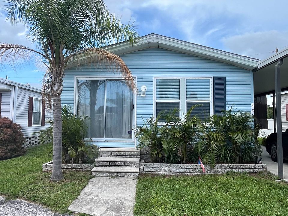 Welcome Home to this Beautifully Updated 1991 Mobile Home Featuring 2 Spacious Bedrooms and 1.5 Bathrooms. The large primary suite offers ample space for king-size furnishings and includes a private en suite half bath for your convenience. Located on a desirable perimeter lot in a welcoming community, this home boasts recent upgrades throughout. Step inside to discover new laminate flooring with all-new subfloors, fresh interior paint, and an open-concept kitchen and living area perfect for everyday living and entertaining. The kitchen features newer stove and dishwasher. The full bathroom has been tastefully remodeled. A stackable washer and dryer are also included for added ease. Enjoy peace of mind with Central A/C, 2019, serviced annually. Take advantage of the covered carport and storage shed for all your tools and toys. Durable vinyl siding enhances curb appeal and low maintenance. Don't miss this rare opportunity for affordable comfort and great location in Beautiful St. Petersburg, FL. Pelican Palms is a 55+ community offering onsite management, community activities, clubhouse, laundry facilities, library, shuffleboard courts, heated pool and hot tub. Bus route is merely steps from your front door. Enjoy Florida pastimes such as fishing, world class golf, beaching, boating, and sunset cruises all within minutes of this move-in ready home. Pets are welcome, 2 pets, up to 25lbs allowed. Call today and take the next step towards home!