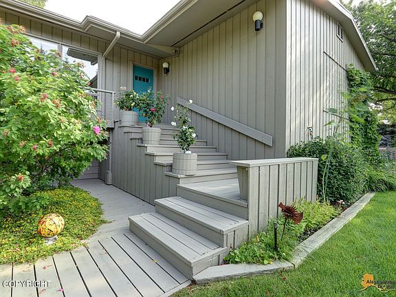 Beautiful manicure 9800 +lot w/ attractive storage shed. Charming 5 bedroom home with Family room.. Large 5th BR currently used as office. Sun filled windows make for light & bright Formal Dining & Livingroom w/ wood burning fireplace, Traffic flow makes this home perfect for entertaining. Kitchen features pantry, double ovens, eating area w/ access to wrap around deckPrivate full bath off masterOversize 2 car garage. Incredible amount of storage throughout entire home. Incredible corner lot, don't miss the Raspberry patch. Close to parks (right out your side yard) airport, Lake Hood, walking distance to Northwood Elementary, churches and restaurants Some furniture available on SBOS.