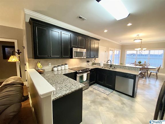 Immaculate brick, custom built, 1 owner home in Hartselle. 3 bedrooms, 2 baths, lots of hardwood and tile. Open floor plan, granite counters, stainless appliances. Split bedroom plan. Large owner suite w his and hers closets. Guest bedrooms are oversized with walk in closets. Tall smooth ceilings, stone gas log fireplace w built ins beside. Pull down stairs to attic with 2x10 joists to accommodate extra storage weight. Fenced backyard, stone walkway, muscadines garden on side. Oversized side entry garage. Great views and sunsets. Floor plan attached. A must see!