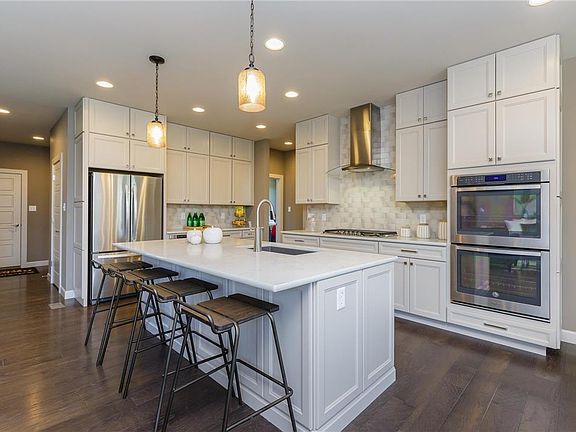 Gorgeous Display Home in the sought after Reserve at Brook Hill by Fischer and Frichtel! This intimate community of only 51 homes, located just off of the Page Ext, sits on beautiful rolling terrain & has a single entrance. The ext is stunning w/brick-stone, low E windows, arch shingles, O/S 3 car garage, carriage style gar doors, 8’ tall door w/dec glass, full sod, prof landscape, an 18x12 maint free deck & an irrig system. Features inc 3 BD, 2.5 BA, 2,872 s/f, Hearth Rm, gas FP w/stone to ceiling, 9’ & 12’ ceilings, quartz countertops, st steel appl, dbl oven, in-drawer micro, gas c/top, chimney hood, U/C lighting, tile b/splash, dbl stacked wall cabinets, island w/brkfst bar, hardwood flrs, Study, frml DR, Lux Mstr Bath, raised hght vanities w/granite vanity tops, wave bowls, R 38 ceiling insul, W/O bsmt, Trane energy effic furnace, tall foundation pour & more. Fantastic location minutes from Hwy 94/364 w/easy access to Hwy 70, shopping, restaurants, city parks & more. IT’S A WOW!