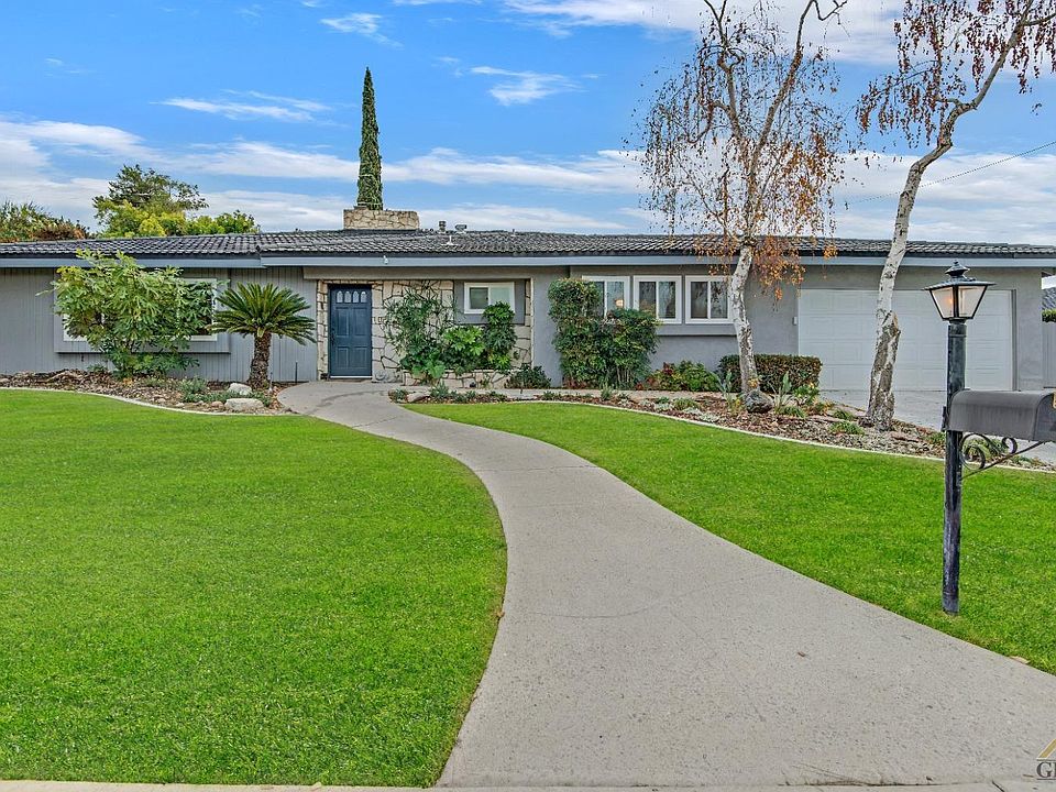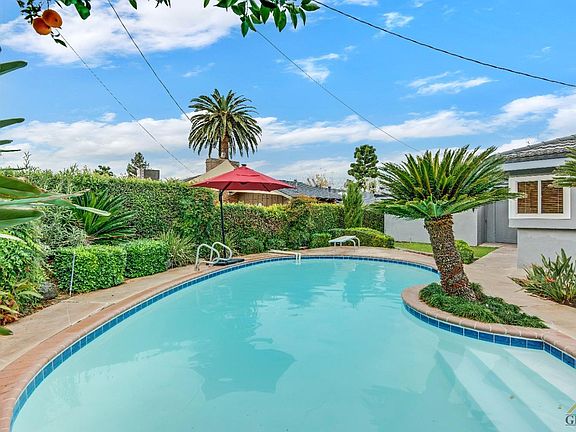 Welcome to this beautiful 3-bed, 2.5-bath home near Bakersfield College with a swimming pool and upgrades throughout (including new PEX plumbing). Heading into the main living area, you will find a floor to ceiling brick fireplace, wood-like flooring, two ceiling fans, and it is opened up to the kitchen/dining area. Inside the separate living room, you are going to see a floor to ceiling stone fireplace with carpet and a huge dual paned window to allow for natural light. The upgraded kitchen is equipped with granite countertops, double ovens, and a tile backsplash. The indoor utility room has plenty of storage space. Each of the three large bedrooms feature carpets, ceiling fans, and spacious closets. The restrooms have white cupboards, large vanity mirrors, and the master hath has been remodeled. The backyard boasts a covered patio area, mature landscaping, and an inground swimming pool w/ diving board. Schedule your private showing today, before this one is gone!