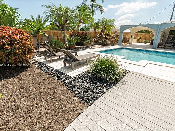Corner House with Ocean accessed privet dock. Turn-Key Airbnb licensed business. Recently renovated with all permits 4 bed/2bth. Modern kitchen with renovated electrical appliances (2023). Fireplace, stove and heater work on natural gas. New composite dock (2024) with davit boat lift. New composite roof (2023-2024). Hurricane windows with mosquito frames. Air conditioning (2018). Sale includes all furnishings and appliances. Large plot (0,37 acre) include private pool BBQ area, fire pit, sun beds, Japanese garden and covered patio. Separate storage unit. Just 10 min (3 ml) to not crowded Hollywood North Beach and Beach Park. A quiet cul-de-sac house is 12 minutes to Fort Lauderdale Airport and 45 minutes to Miami International Airport. Close to vibrant shopping and dinning.