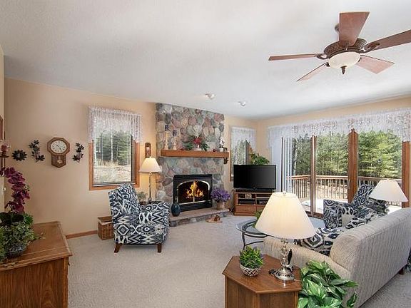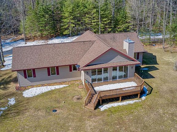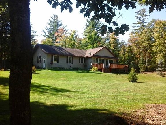 EAGLE RIVER AREA HOME- Well maintained 3 bedroom, 2 bath home offering plenty of privacy and nestled on 5.2 wooded acres. Interior features include an open concept floor plan, kitchen with solid surface countertops, SS appliances and pantry, spacious living room with fieldstone gas fireplace, master bedroom suite and first floor laundry room. The full unfinished basement provides options for additional living space if you choose and the mechanical systems include forced air heat, central air conditioning and drilled well. Need storage space? Utilize the attached 2 car attached garage or better yet the 40'X 36' outbuilding. Beautifully landscaped grounds, outdoor deck and blacktop drive are also part of what this property has to offer. Minutes from Eagle River yet only a short stroll to the 644,000 acre Nicolet National Forest with the Chain O Lakes boat landing providing access to the 28 lake Eagle River/Three Lakes chain also nearby. This is a must see opportunity.