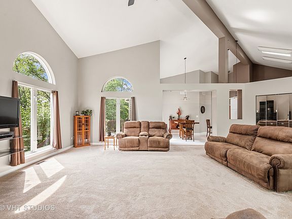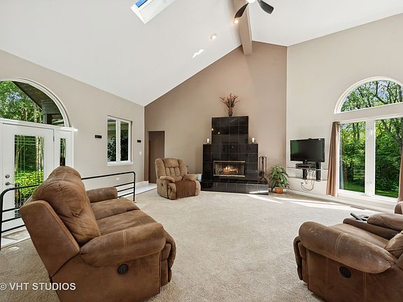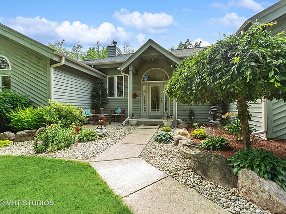 SERENELY BEAUTIFUL IN ALL SEASONS! This Architecturally Dramatic Custom-Built CEDAR RANCH has over $75,000 in Recent Updates. It sits on almost 5 Acres of Wooded Beauty. You'll enjoy Nature at its Best with its Mature Trees, Blooming Perennials, Sunny and Shady areas, and Walking Paths. This 4 BEDEOOM/3.1 BATH home also has a 2ND KITCHEN and POTENTIAL for 5TH BEDROOM on the Lower Level. The Heart of the Main Level is its Open Floor Plan, Soaring 15 ft. high Cathedral and Vaulted Ceilings with 4 Skylights. The Living Room with its Lofty Ceiling, Gas Fireplace, and Transom Windows is open to the Chef's Kitchen which has a Breakfast Bar, Separate Eating Area, and Door that leads to the Rear Deck. This Main Level also has a Formal Dining Room, Large Laundry Room and Luxury Master Bedroom/Bath Suite with Skylight, Huge Walk-in Closet, Jacuzzi Jet Tub, Separate Shower and Private Door onto the Rear Deck. Bedrooms 2 & 3 with the 2nd Full Bath are on the other side of the house on this level. The Finished Walkout Lower Level makes the home over 4354 sq. ft. and even more perfect for "Entertaining or Related Living". Here you will find 9 ft. high ceilings with can lights, a 2nd Full Kitchen, the 4th Bedroom, 3rd Full Bath, and a Bonus Room that could be a Den/ Office/Workout Room or the 5th Bedroom. There is also great a big Recreation Room with Built-in Bar and two sliding doors that lead to another huge Deck and the Backyard. The Garage, Lower Level, and 12' x 24' outdoor Shelter Logic Shed are all great for Storage. If more space is desired, there is room to add a barn or additional garage. Some UPDATES in 2024 include: a New Roof, Gutters, Downspouts, Spray Foam Insulation, Skylights, Carpeting, Wall Sconces, LV Rm Ceiling Fan and Freshly Painted Main Level. You'll Love this Home and the recreational areas Harvard offers! NOTE: Please use the "Additional Information" Link to see a Complete List of Updates/ Improvements, Property Disclosures & Plat of Survey.
