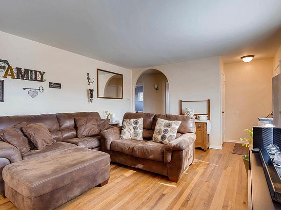 Beautifully updated 4 bedroom, 2 bath, brick ranch-style home in Thornton. Beautiful hardwood floors in the living area flow throughout, giving this home a spacious, polished look. The master bedroom is carpeted and has a slide-in glass door leading out to the privately fenced-in backyard with a large shed. A charmingly covered deck extends from the back of the house into the backyard. The lattice fencing surrounding the patio provides privacy and shade to this outdoor living/entertaining area. The home is in the Adams County School District and part of Mapleton Public Schools. It is nearby many restaurants and shops and close to Yorkborough, Columbia and Sherwood Parks-Great for families!