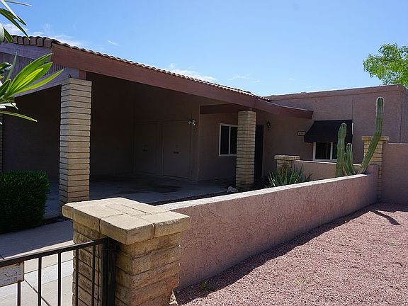 The one story townhouse sits on a cul-de-sac, attached on one side. The home has been extensively updated with better windows, doors, flooring, counters, A/C, and appliances. Exterior painting was just completed, paid by the HOA. Roofing and A/C recently installed with long warranties. "Cactus Casitas" is the self-managed community that does much more for owners than you would expect!