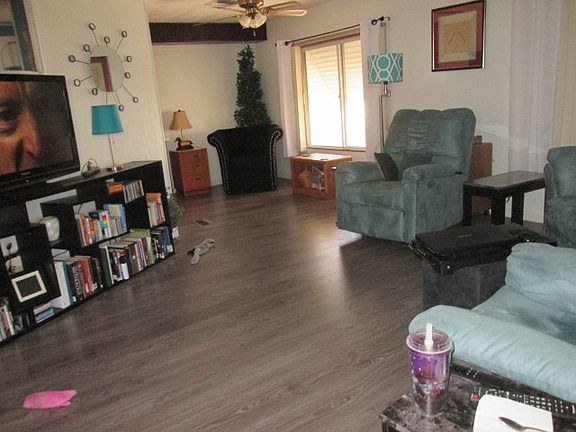 Seller Desperate - Reduced to $15,000 - Can be Moved Kaufman & Broad 24' x 56' - 1344 SF 2 bed + den/family room + 2 baths Mobile Home located in Paradise Shadows 55+ Community. Space rent is $475 + w/s/trash (small pets welcome + fee applies) This is a Lovely Updated 2 Bedroom + Den + 2 Bath Home !!! Shown by Appointment Only - Call Linda Updates to this home include: laminate floors throughout, new light fixtures & ceiling fans throughout, recently painted interior, Master bathroom updated with walk-in shower with foot & back massage, separate tub (installed within 2 weeks) Newer A/C, Roof and Water Heater. You enter the home from the large side porch into the Living Room with vaulted ceilings, grey laminate floors and beam ceilings. To the right is a very nice dining area/breakfast room with ceiling fan & Beam ceilings. The large kitchen is in the center of the home with an abundance of cabinets and counter space. Appliances included: Built-in double oven, cook top, dishwasher, disposal, refrigerator, Off the kitchen is a large den/dining room with vaulted ceilings & nice light fixture. There is a separate laundry room with door out to covered carport with a built in desk area and the washer and dryer are included. Master bedroom is huge with ceiling fan and Mirrored Wardrobe Closet. Master Bath has a beautiful walk-in shower & jetted tub, newer vanity, faucet & comfort height toilet. The 2nd bedroom has a ceiling fan and 2nd bath has a tub and shower combo. This home has an extra long covered carport and separate storage shed.. Paradise Shadows has a indoor pool and spa for year round enjoyment, putting green, shuffle board courts, beautiful air conditioned clubhouse with full kitchen, card room, pool room and library. The Social Club has lots of scheduled activities, something for everyone to do - Texas Hold Em, Bingo, Parties, Pot Lucks, Entertainment and more. Call Linda or Stormy for a tour of this great park and home. Park office can't show this home. Call Linda for all showings.