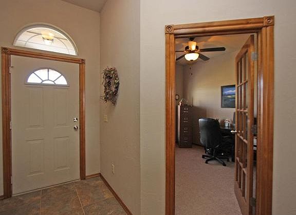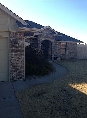 This Beautiful home sits on .50 of an acre.Lots of space between houses!Open and Bright floor plan.Living room and kitchen have tall ceilings,3 large bedrooms plus a study/office.Master bedroom has large master bath plus a walk-in closet.Backyard is fully fenced with a wood fence.Storage building and double covered patios as well.Three car garage with a storm cellar!Make your Appointment today!