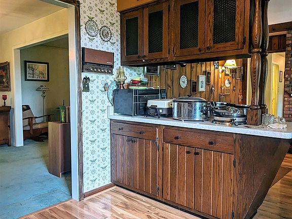 Step inside this majestic brick home located on a spacious 1.08 acre double lot in a great neighborhood in Ashland and start your plans to make it your own! 4 bedrooms and 3 full baths spread out over 2200 square feet provide the canvas to make this home your masterpiece. The top level features a kitchen with breakfast area and a gas fireplace beside a beautiful picture window with a wooded hilltop view. A separate dining room with patio doors and large living room lead to a hallway with 3 bedrooms and 2 baths with one en suite to the primary bedroom which also provides two closets and another doorway to the patio. Downstairs is another large bedroom or office and a family room with a built in bar. Also downstairs is another full bath, laundry room, and the attached one car garage and workshop. Roof, foundation, and HVAC have all been maintained throughout the nearly 50 years the previous owner lived in the home. A quality home at a great price!