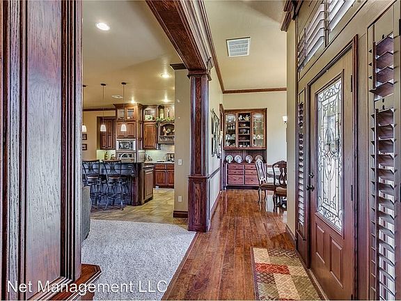 Stunning Home Near Tinker Air Force Base! Call For Military Pricing!! - ABSOLUTELY STUNNING If walking into this beautiful home and enjoying all the amazing amenities isn't enough, take a look not included in home square footage - a 32 X 12.9 finished space that can be used as an WORK-OUT ROOM, MAN CAVE, or HOBBY ROOM with a full bath & a 37 X 17.3 4th CAR GARAGE with an oversized overhead door & attic space. Also professionally added for your enjoyment is your own private OUTDOOR LIVING AREA WITH FIREPLACE, BEAUTIFUL CONCRETE WORK, PERGULA, & a BUILT-IN KITCHEN. The main living space includes a gourmet kitchen with center island & breakfast bar space * lots of counter space * lighted upper cabinets * a formal dining room with built-in hutch also with upper lighting * study with French doors * large master suite with a huge master bath & closet with a built-in center chest * utility room with mud bench & lots of storage * oversized 3 car attached garage with a storm shelter. It's truly a spectacular property and one you MUST SEE!! No Cats Allowed (RLNE3424465)