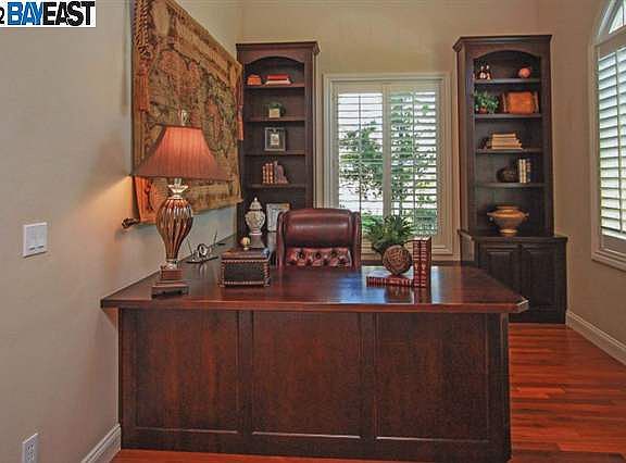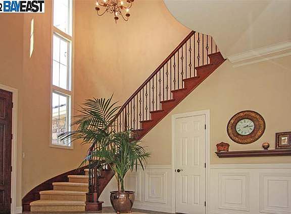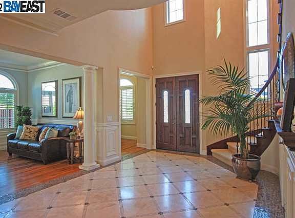 Executive Dublin Ranch home-Toll Brothers. Extensive high quality upgrades-stunning 2 story grand entry w/ spiral iron staircase, wainscoting, double crown molding, travertine flooring, cherrywood cabinets, gourmet chef's kitchen w/stainless appliances, granite slab counters, full bed/bath down&more