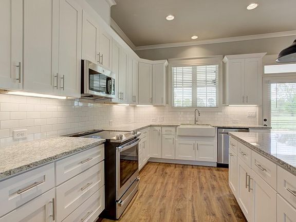 The Hilton Plan built by Expo Homes. Quick Move-In. Custom styled farmhouse situated on 3.52-acre estate minutes to all the conveniences with the privacy of being in the country. Chef's large kitchen showcases stainless steel appliances, a large island, granite countertops, farmhouse sink and custom cabinets. Spacious pantry features wood shelves and cabinets. Amazing primary suite features a large walk-in closet with custom island. Primary bath boasts luxuries like a soaking tub, oversized semi-frameless tile shower, and double vanities. The laundry room includes upper and lower custom cabinets plus a utility sink. Upstairs you will find a bonus room with a closet and full bath great for an office or guest room. Granite countertops in all secondary baths. Large covered patio with grilling area and gas line. Side-entry two-car garage. Ready Now!