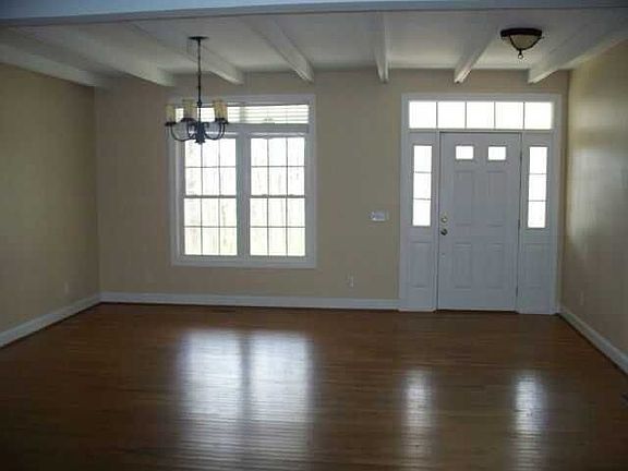nice modern brick home featuring 3 bed/2 baths, hardwood floors, open floor plan with living area, kitchen, dining area. 2 car attached garage, sitting on wooden lot