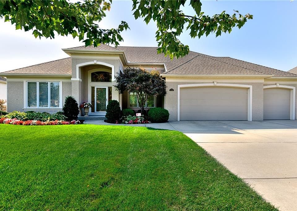 Stunning Reverse 1-1/2 Story in Staley Farms Golf Course community. Welcome to your dream home! This beautiful 4-bedroom, 3.5 bath home is perfectly situated on the 15th hole of Staley Farms Golf Course, offering picturesque views and a serene lifestyle. Spacious great room to enjoy abundant natural sunshine through the impressive two-story windows. Large gourmet kitchen with tall cabinets that provide ample space for cooking and entertaining. Walkout lower level ideal for gatherings, it also features three bedrooms, suspended slab and opens out to the backyard. Outdoor living, relax on the deck, overlooking the lush common area and golf course. Formal dining room perfect for hosting dinner parties and special occasions. Convenient 3 car garage featuring a suspended slab, providing additional storage or flex room. This home combines luxury and fuctionality in the desireable Staley Farm Golf Club. Don't miss the chance to make it yours! Exercise room, tennis, volleyball, zero entry pool, indoor basketball court and located near highly desired Staley High School.