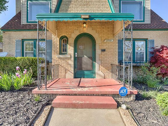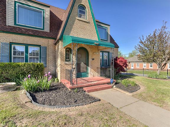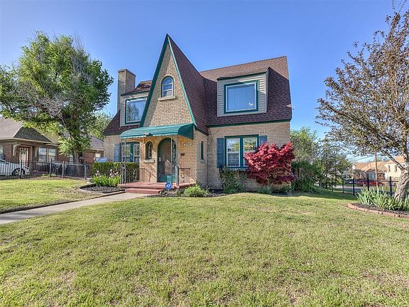 Professional photos coming soon... Location, location, location! This historic tudor is packed with potential. Located in the heart of OKC and just minutes from the Plaza District, Midtown, Downtown, OKC Energy and Thunder games. Beautiful original oak hardwood floors, timeless stained tread plates, original Frankoma tile fireplace and all the historic charm. The fireplace and staircase serve as great focal points in a spacious living area. Head through the french doors and find a large traditional dining, perfect for entertaining guests. There is an adorable breakfast nook with an original built-in right off the kitchen. On the other side of the kitchen you have access to the living area, basement and powder bath for guests. Upstairs you have 2 very large bedrooms and primary bath. Closets are good size. In the bedrooms you have fun nooks and drawers that add storage and to the historic appeal. Windows have been updated to vinyl and allow tons of natural light to flood the entire house. Sewer line and other drains have been replaced to the house and garage apartment in 2022. The roof was replaced in 2017. HVAC replaced a year ago. The garage apartment is above the 2 car garage and has a full bath and kitchenette. The garage apartment square footage is included in the total square footage. Other pros include a carport, 2 car drive, shed, and located right on the Crestwood median. Bring all your ideas, favorite finishes and make this one your own!