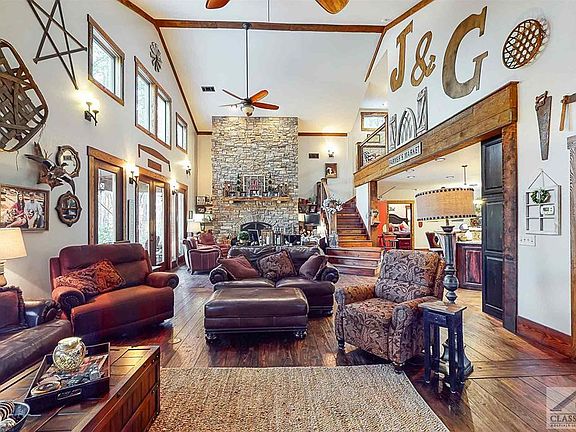 This exquisite property is one you don't want to miss! A gorgeous home situated perfectly on 16.53 acres of wooded land in a very desirable area of Morgan County. A spacious family room features wide plank pine hardwood flooring, a soaring vaulted ceiling and an incredible stacked stone fireplace. An open concept leads you right into the eat-in kitchen complete with hard surface countertops, custom cabinetry and a massive bar made of reclaimed wood making this one-of-a-kind kitchen! Stainless steel Kitchen Aide double ovens along with a range/oven combo make this one a chef's dream! The master suite is on the main featuring a spacious master bedroom and a master bath complete with a walk-in shower, garden tub, custom his and hers vanities and closets! Upstairs you have two secondary bedrooms and a master bath perfect for kids or guests. Walk out of the master or the kitchen area onto a comfortable covered porch overlooking the breathtaking pebble tec salt water pool. The pool area features a fun pool house area with storage and is perfectly landscaped! A 30 x 40 metal barn is nestled on the property and is a great place for your camper, boat, all terrain vehicles and more! There are living quarters in the barn with a bedroom, full bath, kitchen and living area as well as a comfy loft. This dream property is located minutes from I20 and 10 minutes from Madison. The property is enrolled in a conservation agreement with Morgan County and will need to be continued by the new owners. Make your appointment to see this stunning property today!