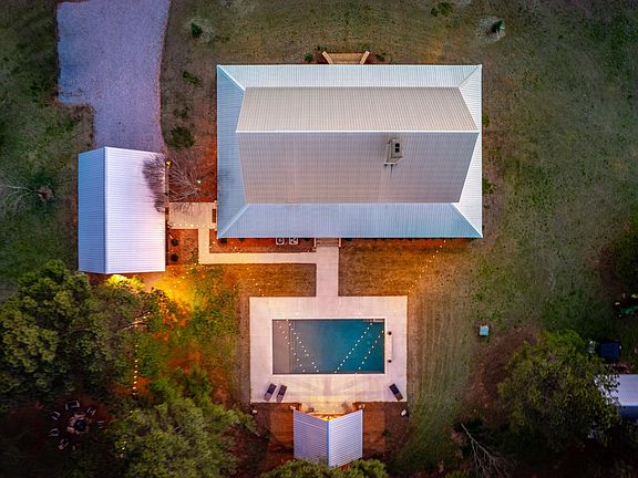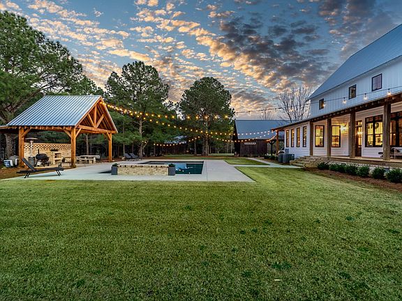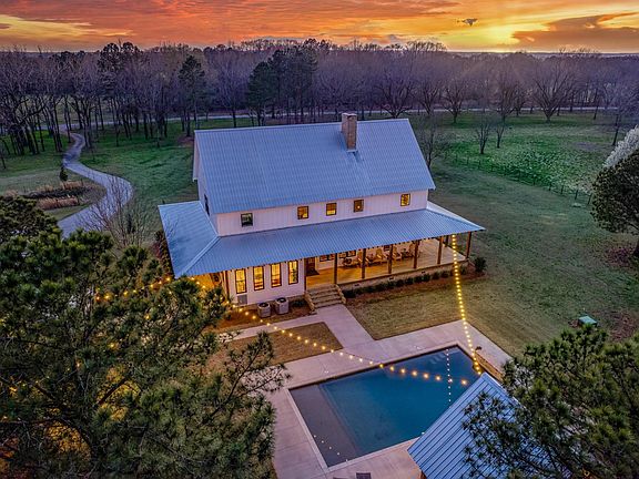 The ultimate farmhouse on 100 acres. This is the real deal. The entire home is planked with custom cut lumber and the fireplace stands from floor to ceiling and is a real masonry fireplace. Attention to detail is abundant throughout the home with custom cabinetry, custom white oak, wide planked hardwood flooring, custom light fixtures, custom sliding barn doors. The upstairs secondary bedrooms are all oversized, with an additional private retreat above it, offering plenty f space for a play area or office. The home has over 2080 sq.ft. of a wrap around Cypress Wood porch which offers pastoral views from all sides. The gunite pool with tanning ledge and waterfall is great for entertaining and adjoins the outside grilling area and covered pavilion. A one bedroom one bath guest house with a loft is perfect for extended family. And the best part...did we mention the 210 sq.ft. storm shelter? Hopefully, you will never need it, but it is there if you do. This is a once in a lifetime opportunity to own such an amazing home on one of the prettiest pieces of property in the county. The 100 acres is in a lifetime conservation and cannot be divided. Call for your private tour today