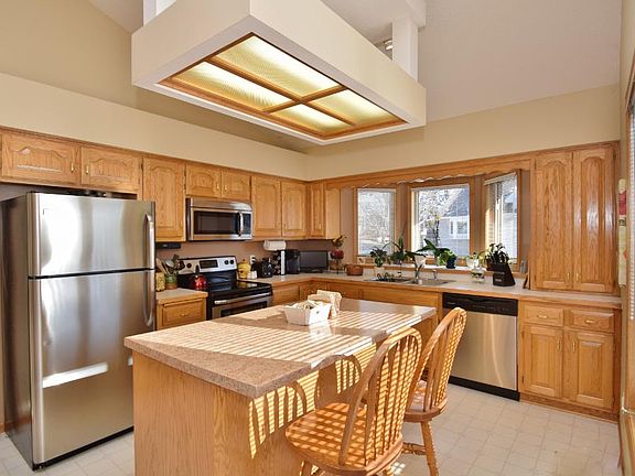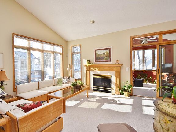 Popular secluded Weston Woods on the River Townhomes. Like new condition larger end-unit with 2 bedrooms and 2 baths on the main level. Great kitchen with center island and new stainless steel appliances. Open floor plan with vaulted ceilings, gas fireplace, 4-season porch and deck with great views. Finished lower level has W/O family room with full-wall built-in bookshelf, large bedroom, office and 3/4 bath. Next to walking trail that leads to park and Mississippi River.Don't miss this one!, Directions Hwy 10 to Cutters Grove Ave, S to Rivers Bluff Lane, R to Pine Ridge Dr, L to home on right