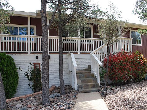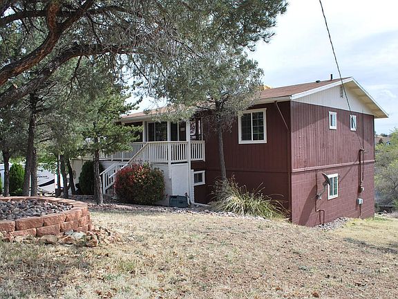 Immaculately kept home. Enjoy incredible Northern AZ views to San Francisco Peaks & Granite Mtn. from inside or on the slate deck. Fantastic open living space recently painted w/ new kitchen counters. Beautiful easy care terraced landscaping includes 2 sheds. New dual pane windows throughout in 2013. Many other recent improvements. Main level living plus an office then 3 bdrms, family rm. & another full bath & laundry rm. downstairs. Wall mount Flat Screen, 2nd frig & all appliances conveys.