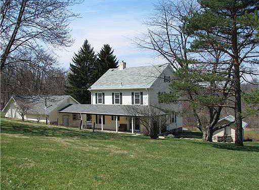 Beautifully renovated farmhouse nestled on over 7 prime acres within walking distance to Braddock's Trail Park! This charming home offers cheerful surroundings and quality updates throughout. Welcoming foyer with crown molding, newer oak floor, restored oak stairs, railing and banister. Fully equipped updated kitchen features natural cherry cabinets with granite counter tops and a center island/breakfast bar. Warm inviting dining room with fireplace, built-in cabinet and crown molding. Cozy living room with fireplace, crown molding and newer oak floor. Convenient first floor den, laundry area and updated bath. The upper level offers 4 bedrooms, an updated bath with jet spray tub and separate shower, restored pine floors and a walk-up attic.The exterior features a newer oversized 4 car garage with covered breezeway, nice covered front porch, large covered wrap around back porch, newer asphalt driveway, a spring house with newer roof and a small pond. Additional renovations/updates since 2003 include windows, walls, flooring, crown molding, baseboards, plumbing, wiring, 200 amp electric service, furnace, wood burning stove, central air, interior and exterior light fixtures, vinyl siding, soffit and fascia, gutters and downspouts, blown-in insulation, repointed foundation, front door, French doors, rebuilt front and back porches.
