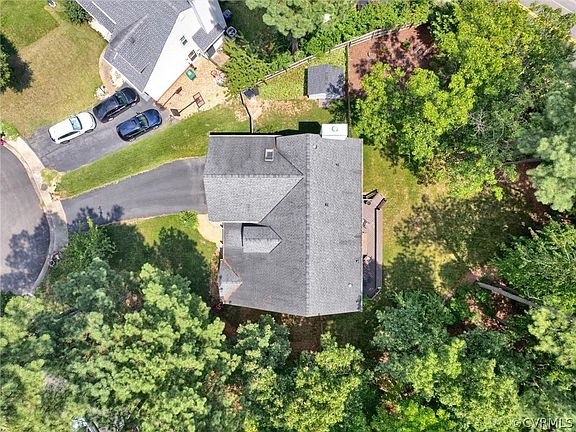 Welcome to Your Dream Home in a Serene Cul-de-Sac! Nestled in a tranquil cul-de-sac, this charming home offers convenient privacy and quick access to highways 64, 288, and Interstate 95, as well as the vibrant shopping and dining amenities of Richmond's west end. The expansive, private, park-like backyard is perfect for both intimate gatherings and large celebrations, providing an ideal space for entertainment and relaxation. The roof was replaced in 2008 with a 25-year warranty by Nathan Roofing, and a new stainless steel chimney cap and updated bathroom vent caps have been added. Year-round comfort is ensured by dual-zoned electric heat pumps, with a Trane unit upstairs and a Carrier unit downstairs. The original cedar siding, updated with an insect barrier and vinyl siding in 2012, adds to the home's durability and charm. Inside, you'll find several upgrades, including plush new carpet with extra-thick padding upstairs, a beautifully renovated guest bathroom, and recently updated primary bathroom and downstairs powder room. The deck and front porch have been stained and updated, and additional features include a dust cover for the pull-down attic entry, an encapsulated crawl space, and kitchen windows replaced with a lifetime warranty. For your entertainment needs, the deck features speakers wired to the family room, complemented by in-wall surround sound speakers, all of which convey with the home. An 8x10 storage shed offers versatile space for your needs. The HOA fee is just $60 per year, covering maintenance of entry/street signs, paving, snow clearing, and property addition approvals. The community organizes events like yard sales and socials, fostering a wonderful neighborhood atmosphere. Utilities include electric service from DOM, water/sewer from Henrico County, and trash collection by Choice Waste Services. Verizon Fios provides gig-speed internet, with Xfinity also available. A survey/plat is available upon request. This home isn't just a place to live—it's a community to be a part of.