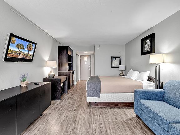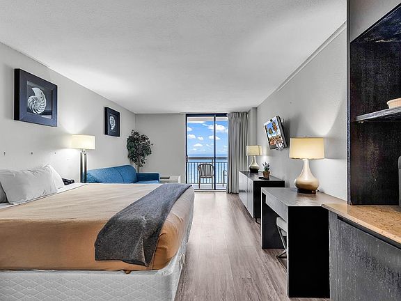 Wake up to some of the best views Myrtle Beach has to offer. Own your own piece of paradise with this renovated oceanfront condo. From the moment you walk in you are greeted with LVP flooring, a new king size bed, and a loveseat that opens to a full size bed, all added in the last couple years. Sun-N-Sand offers it's owners and guests the total experience with an indoor and outdoor pool, a fitness center, game room, bar, and the ability to just walk outside and walk directly on the the best beaches Myrtle Beach has to offer. You will enjoy the ability to walk to restaurants, or take a short drive to The Market Common for tons of fantastic festivals, restaurants ,and shopping. If you are looking for the perfect home at the beach that allows you to use it or rent it or a combination of both, this one is it.