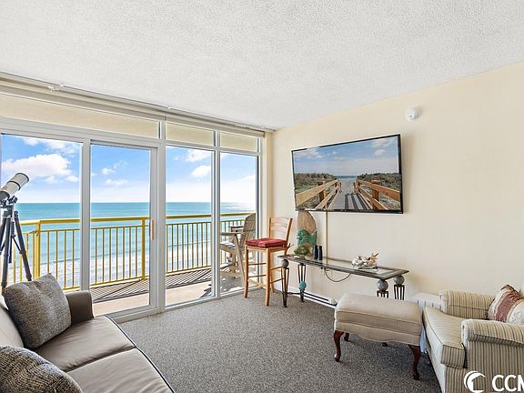Welcome to your dream oceanfront oasis at Bay Watch Resort in North Myrtle Beach, South Carolina! This recently updated, exceptional 2-bedroom, 2-bathroom end unit condo offers breathtaking views of the Atlantic Ocean throughout the entire unit, including both bedrooms, that will leave you in awe. The entryway boasts stylish vinyl laminate flooring, while the living room and bedrooms feature new, plush carpeting. The kitchen is a source of inspiration with its granite countertops, brushed bronze faucet, and panoramic ocean views. The primary bedroom offers access to the oceanfront balcony, where you can start your day with a stunning sunrise, and it comes complete with an ensuite bath for your privacy and comfort. The second bedroom is equally enchanting, offering its own private balcony and beautiful ocean views. Both bedrooms are equipped with motorized blinds, complete with remote controls for your convenience. This unit has been lovingly cared for by the current owners and has not been rented during their ownership, ensuring pristine condition and meticulous maintenance. It comes fully furnished, including a washer and dryer, a love seat sleeper sofa, as well as a swivel wall-mounted flat screen smart TV in the living room for your entertainment. But the magic doesn't stop there. Bay Watch Resorts offers an array of on-site amenities to enhance your coastal lifestyle, including three restaurants, 18 indoor and outdoor water features, a fitness center, a gift shop, and seasonal activities for adults and children alike. The oceanfront conference center is perfect for business or social gatherings. Whether you're an investor seeking a lucrative opportunity or an individual looking for a secondary or primary residence, this condo is the perfect choice. Bay Watch Resort is renowned for its unparalleled location and wide range of amenities, making it a coastal paradise. Don't miss the chance to make this oceanfront haven your own. Contact us today to schedule a viewing and experience the coastal lifestyle you've been dreaming of! Be sure to check out the virtual tour for a comprehensive view! Buyer and buyer’s agent are responsible for due diligence and information contained herein. Verification of square footage is buyer’s responsibility.
