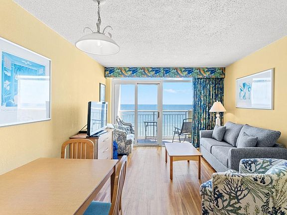 Experience oceanfront living in this fully furnished, one-bedroom, one-bath condo with a rare foyer entrance. Enjoy breathtaking views of the ocean from your living room and full kitchen. Plenty of room for guests as this unit features two queen beds in the master bedroom, as well as a Murphy bed in the living room. Dive into a world of amenities, including lazy river, indoor and outdoor pools, and a fitness room. Indulge in oceanfront dining at the Blue Moon Cafe or sip cocktails at the Fish Tails Beach Bar while soaking in views from the pool deck. With a sports bar, game room, and convenience store on-site, this condo is not just a home; it's a resort style-oasis. Whether you're seeking a second home or investment opportunity with great rental history, this property has it all.