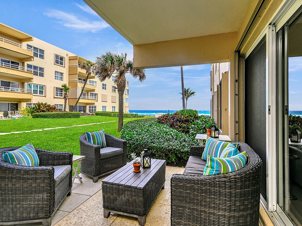 PARADISE FOUND! Sit on your patio and look directly at the Atlantic Ocean. Tastefully updated ground level. Walk out directly to pool, beach, and ocean. Steps to the famous Delray Sands Resort. RARE OPPORTUNITY! This is ONE BEDROOM, ONE BATH.