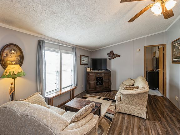 The location of this house is great, it's near the entrance of the park, near the clubhouse/ office, the mailboxes, the playground, the basketball courts & overlooks a large grass space. Also, this house runs lengthwise along the property. The front of the house has a large cover porch. Between the house and porch, a patio could be added. The roof was replaced (2022 a fenced dog run added (2016, heat tape replaced with auto turn off (2021. Inside a large kitchen with a lot of cabinet space & coffee bar. Eat-in dining room with built-in hutch. A breezeway connecting the house to an oversized 2 stall insulated garage with furnace, including insulated garage door (2022 & epoxy painted floor. ADT alarm system, New low profile walk-in shower with grab bars (2022, high rise toilet (2022, laminate flooring throughout except for bedrooms (2020, kitchen faucet (2019, plantation blinds in living room & 2 bedrooms (2023. Appliances included- new gas furnace & AC units (2023, washer (2016, steam dryer (2017 (gas, refrigerator (2017, hot water heater (2018 (gas ,water softener (2018, stove (gas. Items throughout the house are negotiable to stay with the house, the seller is downsizing.