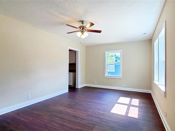 Take a look at this house; single level and ready to move-in. It is a large corner lot and it’s located near major highways for convenient commuting and in a dead-end street. Entering the house, the front covered porch offers a relaxing sitting area leading into the living room. The living room has plenty of natural light and easy access to the kitchen to the right. The kitchen has new cabinetry, tile backsplash and is adjacent to the laundry room. The laundry room has space for storage and an exterior door leading to the backside. The 3 bedrooms are on the left side of the house with a hallway to access the bathroom, a linen closet and the bedrooms. The back yard is partially cleared, all leveled and plenty of area for gardening or parking, which can be accessed from the side street. Lots of updates; new windows, new heat-pump HVAC system, new siding and roof from 2019. Call for your next showing appointment. Please See Agent Only Remarks.