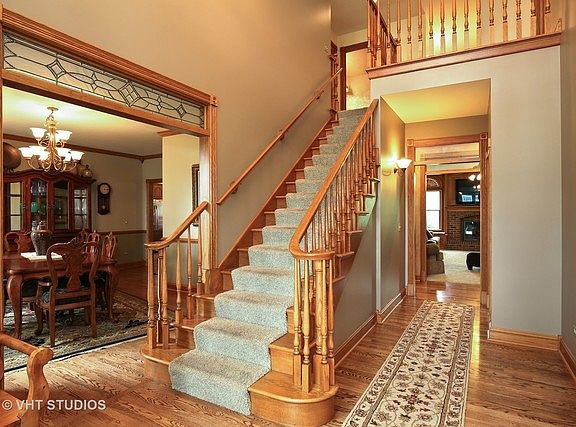 Stunning custom built home with space for everyone in the family to live and play. This beautiful 5 bedroom, 3.1 bath home is located in desirable the Hazelwood community, modern day luxury with the peacefulness of nature. A professionally landscaped yard welcomes you home. Enter to a grand two story foyer that sets the tone for the rest of this flawless home. Entertain and enjoy holidays in your formal living room and dining room. Enjoy family and the casual gathering of friends in your newly remodeled (2008) eat in kitchen with granite countertops and SS appliances, four season room with built in fireplace and expansive outdoor stone patio including a custom gas fireplace. Up the grand staircase is four large bedrooms including a spectacular master suite. Bring your ideas for the sweet bonus room, perfect for a nursery, craft room or playroom. Finished basement offers many opportunities, family room, workout room, steam shower and more. Close to Metra, D47 and D155 top rated schools.