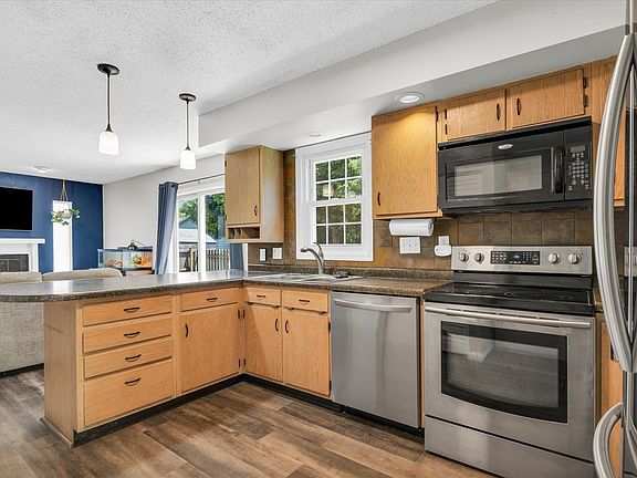 Lovely move-in ready 4 Bedroom, 2.5 Bathroom home on fully fenced corner lot in Stratford Park Subdivision. Luxury Vinyl Plank flooring installed throughout the entire home in 2023. Two living spaces on the main floor plus a separate dining room with sliding door access to the deck overlooking a maturely landscaped yard and flowering hydrangeas. Open concept kitchen with breakfast bar and updated appliances connects to the cozy family room with wood burning fireplace. Second level features all 4 Bedrooms including the owners suite with vaulted ceilings and en-suite full bathroom. 3 additional bedrooms and full bathroom with conveniently located laundry also found upstairs. Don't need a 4th bedroom? The unique bonus room above the garage makes the perfect home office or studio! Additional outdoor access off the family room leads to a 30x12 shaded concrete patio surrounded by a 5.5ft tall wood privacy fence ideal for entertaining.