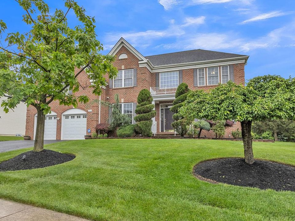 Welcome to the Estates of Huntingdon Valley, a lovely community of 90 homes situated walking distance to the Philmont train station offering a quick 30 minute commute into Philadelphia and located in Lower Moreland’s highly-rated school district. This handsome brick front home is beautifully updated and maintained resting on a private corner lot with a deep back and side yard offering lots of room to enjoy outdoor activities. Enter through the covered front portico and into the two-story foyer with sweeping staircase. Gleaming hardwood floors compliment the first floor. To your right you will find the living room flowing into the dining room accented by decorative columns, crown molding, and wainscotting. To the left you have a large private office space or possible first floor bedroom with a deep closet and doors for privacy. As you move to the back of the home you will find an immaculate and updated gourmet kitchen featuring granite countertops, large center island, tile backsplash, stainless steel appliances, dual wall ovens, and a pantry all with pretty tile floors. The kitchen opens to a breakfast room, sunroom addition and the great room. The sunroom is surrounded by windows and has an exit to a TREX deck while the two story great room offers floor to ceiling windows, gas fireplace, hardwood floors and back staircase to the second floor. A laundry room and powder room complete the first floor. The second floor hosts four bedrooms and three full bathrooms. The primary suite has plush carpeting, numerous windows to soak in the sunlight, tray ceiling, sitting area, walk-in closet and a luxurious bathroom with double sink vanity, soaking tub and glass enclosed shower. A large hallway separates the primary suite from the rest of the bedrooms and offers additional closet space. The first two bedrooms share a fully updated jack and jill bathroom and both have large closets, plush carpeting and deep closets. The fourth bedroom sits at the end of the hall and has its own bathroom accessed through the main hallway. All of the bedrooms are spacious. Looking for more space? Head down to the basement level and you will find high ceilings, plush carpeting a full bathroom and a large recreation area. There is also a storage room! Freshly painted throughout in neutral colors, two-zone heating and air conditioning for added comfort, attached two car garage with electric vehicle charger and sprinkler system for the lovely landscaping make this a fabulous home.