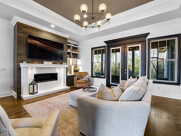 'CURRENTLY UNDER CONTRACT, SELLER WILL CONSIDER BACKUP OFFERS' 4 bed 3.5 bath with all of the finishing touches! Walk through a stone archway at the entrance of the home to find 12 ft ceilings, a beamed accent above the dining area, and 9 ft doors throughout. Kitchen features custom cabinetry, a 7 ft island, and large pantry. Open-concept living/dining area features a gas fireplace with French doors. The large screened in patio overlooks a tranquil preserve area. Split floor plan with 3 bedrooms/2 bathrooms on one wing, one bedroom can be used as an office and has glass paned double doors. Other wing is the master bedroom, a large walk-in closet with custom shelving, a custom made tile shower, separate jetted tub, and double vanity. Upstairs is a bonus room with window, closet and a half bathroom. A door can possibly be added if requested.