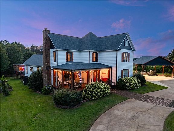 Historic Country Retreat on 5 Acres with Pool, Gardens, and Hobby Farm Step into the storybook charm of this one-of-a-kind country estate, where timeless character meets relaxed rural living. Nestled in the heart of a private 5-acre tract with a creek meandering along the back of the property, this residence began as two separate 1880s farmhouses—relocated and beautifully combined in 2000—resulting in a warm and distinctive home that honors its roots while embracing modern comforts. Original materials from the homes were repurposed with intention: brick pavers from one house now form the welcoming walkway, and stone from the other creates a stunning rock retaining wall and front steps. Inside, custom craftsmanship shines throughout with transom windows, antique doors and doorknobs, and original pine flooring that gives a nod to the home’s rich past. The main level features a bright family room with a working masonry fireplace, flowing seamlessly into the dining area and a charming eat-in kitchen with stainless steel appliances, a central island, and views into the sunroom—an ideal space for plant lovers. Exterior doors from the sunroom open to both the side yard and the backyard entertainment haven. The primary suite on the main floor boasts a spacious ensuite bath with double vanities, a claw-foot soaking tub, and a frameless glass shower. A secondary bedroom has been converted into a dream walk-in closet, while two more closets offer even more storage. A half bath, laundry room, and additional closets round out the main level. Upstairs, you’ll find three oversized secondary bedrooms—all with double-door closets—as well as a full bath with double vanities. One bedroom offers attic access, and a second attic entry is located in the hallway for even more storage convenience. Outdoor living is truly unmatched here. The home sits at the center of the property, offering privacy and serenity in every direction. A massive back deck surrounds a 30-foot above-ground pool and includes shaded lounge areas, wiring for four outdoor TVs, a hot tub (included!), and even power hookups for an outdoor kitchen. The front porch is also wired for a TV—ideal for morning coffee or evening relaxation. A power-equipped carport and RV pad offer utility and flexibility, while the grounds are filled with life: raised 8' x 4' garden beds, an herb garden with mint, rosemary, and even an olive tree, plus producing apple trees, blueberries, blackberries, and a blooming tulip tree. A fenced hobby farm area houses chickens and a pot-bellied pig, and there’s a detached building for tools or yard toys. Whether you're entertaining, farming, gardening, or simply seeking space to breathe, this unforgettable property offers a rural lifestyle wrapped in rich history and creature comforts. Come experience the charm and soul of 2701 Victory Church Rd—your storybook country life awaits.