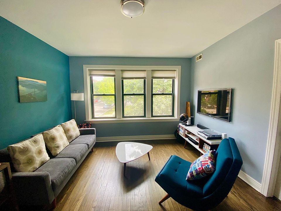 Comfort and convenience! 2-min walk to the California Blue Line Stop (one block), close to Boiler Room, Colectivo coffee, Revolution Brewing, Spilt Milk, Pilot Project, Target. Easy biker's commute down Milwaukee Ave and close to 606. Bright corner unit with windows in every room in ideal Logan Square location! This unit is on the second floor of the building. Large kitchen complete w/42" cherry cabinetry/granite & all stainless steel appliances. Completely remodeled bath, refinished hardwood floors and freshly painted throughout. In-unit washer/dryer, central air and heat, & good closet space. Extra storage in basement included. 1500 Security Deposit and one month's rent due at time of signing** Owner pays for water, sewage, & garbage. Tenant responsible for electric, gas, cable, & internet. Pet friendly (small dog 40lbs or less or cat). Pet deposit of $300. No smoking allowed in unit.
