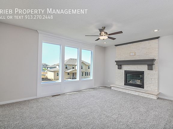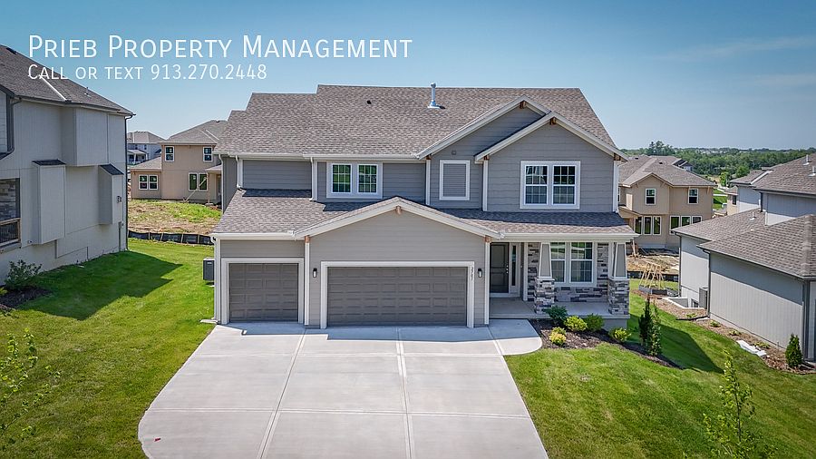 The Sydney 3 - A spacious 5-Bedroom Home with Elegant Upgrades in a Great Location! Welcome to your new home! This beautiful and thoughtfully designed house offers 5 bedrooms, 4 full bathrooms and a first floor room that's perfect for a home office or additional bedroom. Step through the two-story vaulted entryway and into an open concept great room, kitchen and breakfast area, ideal for relaxing or entertaining. The kitchen features a large center island with bar-height seating, a walk-in pantry, stainless steel appliances and stunning granite countertops. You'll also love the upgraded tile backsplash, custom cabinetry, new blinds and dry bar connecting the great room to the dining area. The main floor includes hardwood flooring throughout the entry, kitchen, breakfast area, and mud room. You'll also find a handy boot bench and entry closet to keep things organized. Upstairs, the spacious master suite is your private retreat, complete with a luxurious jetted tub, walk-in tile shower and direct access to the laundry room through the walk-in closet. All upstairs bedrooms feature vaulted ceilings and private access to bathrooms offering comfort and privacy for everyone, including your pets. Additional highlights include: Custom tile fireplace with wood trim in the great room Raised granite vanity tops in master and first-floor bathrooms Tile flooring in all bathrooms and the laundry room with washer and dryer hookups included Berber carpet on the stairs Covered patio and sprinkler system for easy outdoor living New blinds and garage door opener included Fenced in backyard! Located near West Market, Olathe West High School and Lake Olathe, you can enjoy both local convenience and outdoor recreation. The HOA also grant accessibility to the neighborhood pool, trails and playground. Don't miss out on this spacious and stylish home! *Owner is responsible for lawn care